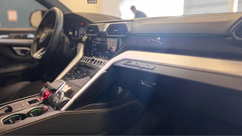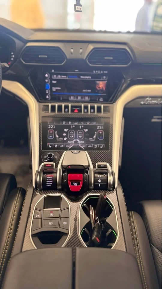 Lamborghini Infotainment System: Dual touchscreens for navigation, media, and vehicle settings.